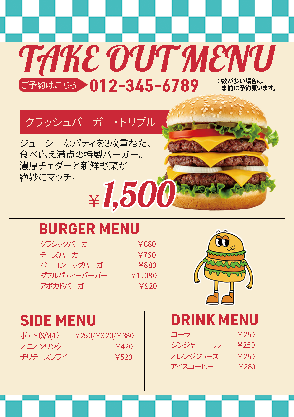このメニュー表は、見やすさと配置を意識して制作しました。 |