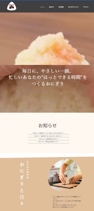 おにぎり専門店『おにぎりと日々』ランディングページデザイン おにぎり専門店「おにぎりと日々」LP 世界観訴求を重視した飲食店向けランディングページデザイン。 構成設計 / デザイン ランディングページ 約2週間